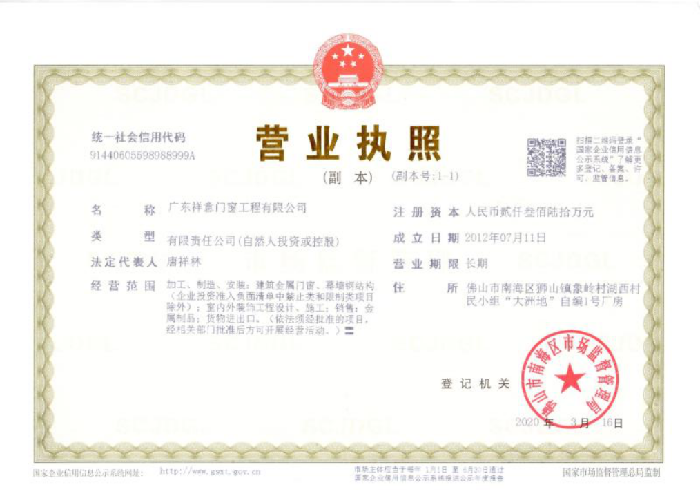 廣東祥意門窗工程有限公司是一家專注鋁合金門窗工程及門窗加工、制作的優質企業。公司憑著精湛的技術服務和優良的售后服務,已成功完成多個優質項目。